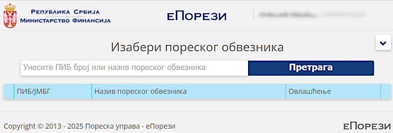 At the еПорези site the tax payer list is empty: